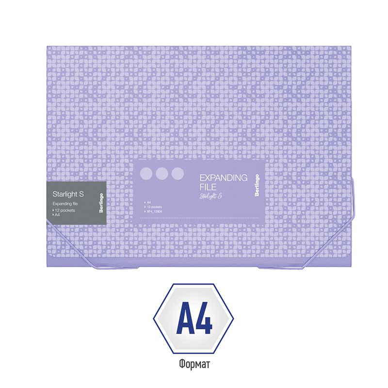 Папка на резинке, 12 отделений Berlingo "Starlight S" А4, 230*335*35мм, 700мкм, фиолетовая, c рисунком
