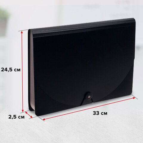 Папка-органайзер для бумаг и документов на резинке, 13 отделений, BRAUBERG DOCS, А4, черная, 271152