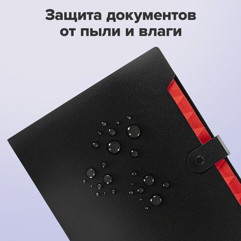 Папка-органайзер на кнопке 12 отделений, BRAUBERG "Extra", А4, черная с красным, 271934