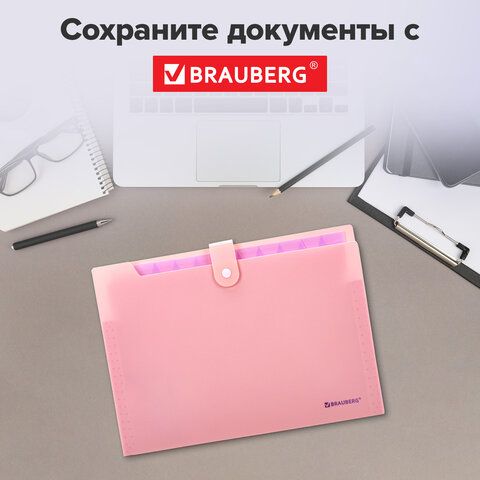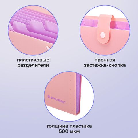 Папка-органайзер на кнопке 12 отделений, BRAUBERG "Extra", А4, персиковая с лавандовым, 271931