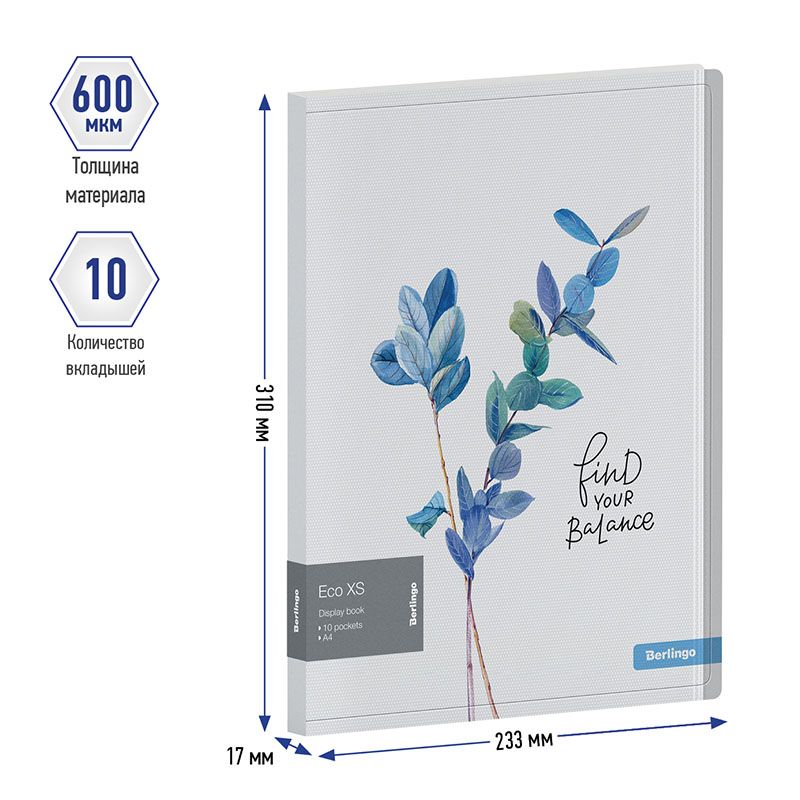 Папка с 10 вкладышами Berlingo "Eco XS", 17мм, 600мкм, с внутр. карманом, с рисунком
