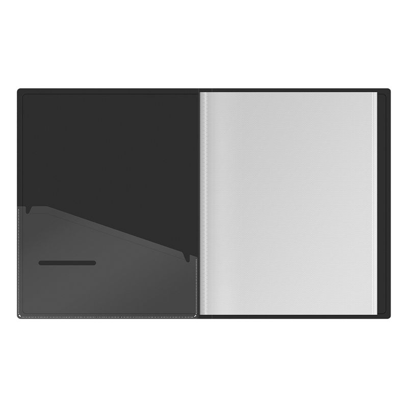 Папка вмещает до 100 бумажных листов. Упакована в индивидуальный прозрачный пакет по форме.