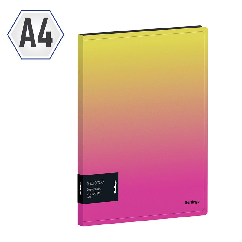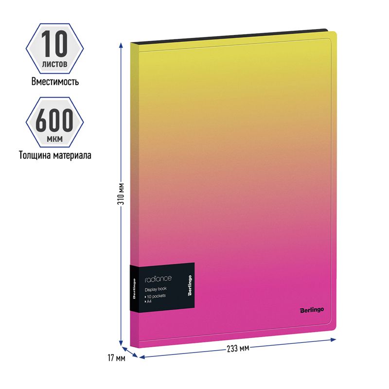 Папка с 10 вкладышами Berlingo "Radiance", 17мм, 600мкм, с внутр. карманом, желтый/розовый градиент