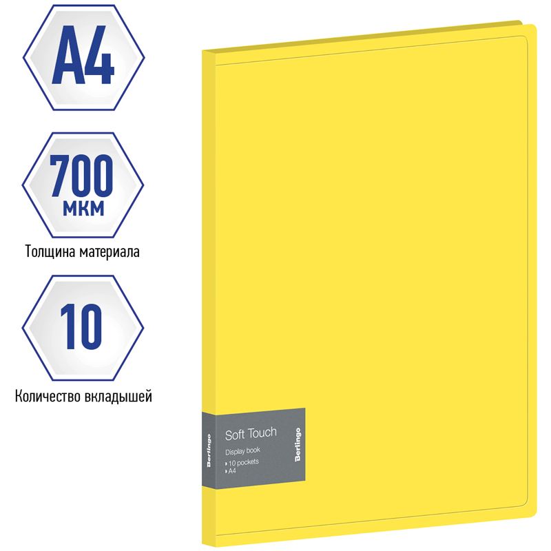 Папка с 10 вкладышами Berlingo "Soft Touch", 17мм, 700мкм, желтая, с внутр. карманом