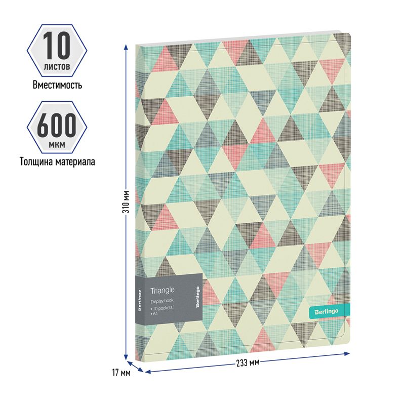 Папка с 10 вкладышами Berlingo "Triangle", 17мм, 600мкм, с внутр. карманом, с рисунком