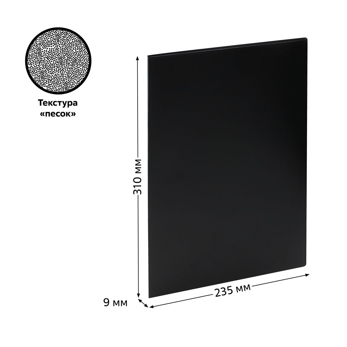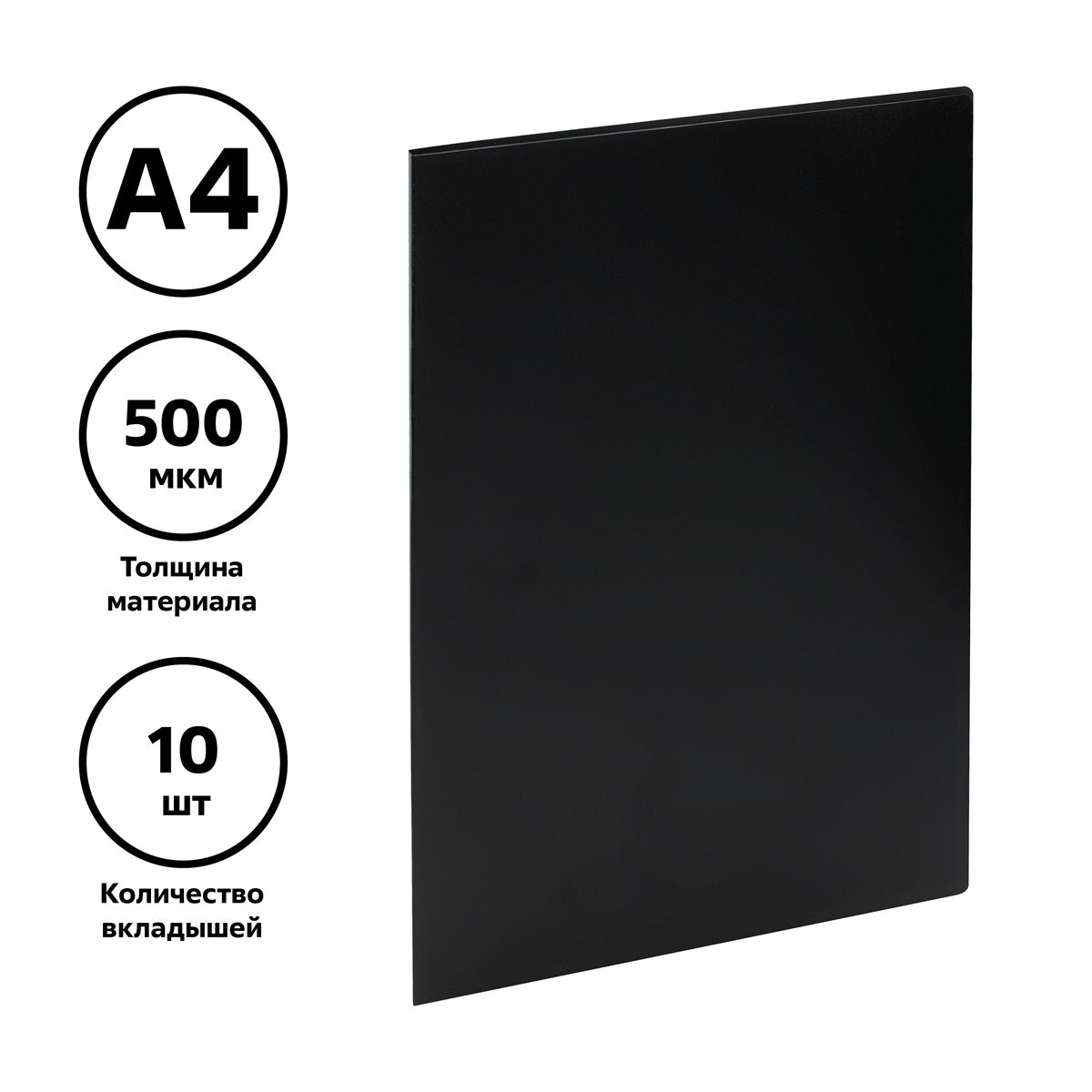 Папка с 10 вкладышами СТАММ А4, 9мм, 500мкм, пластик, черная