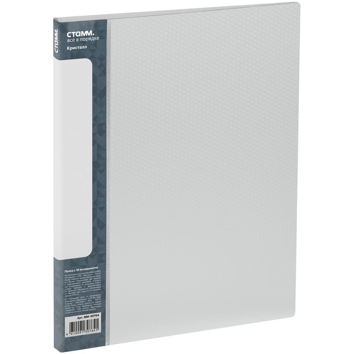 Папка с 10 вкладышами СТАММ "Кристалл" А4, 9мм, 600мкм, пластик, бесцветная