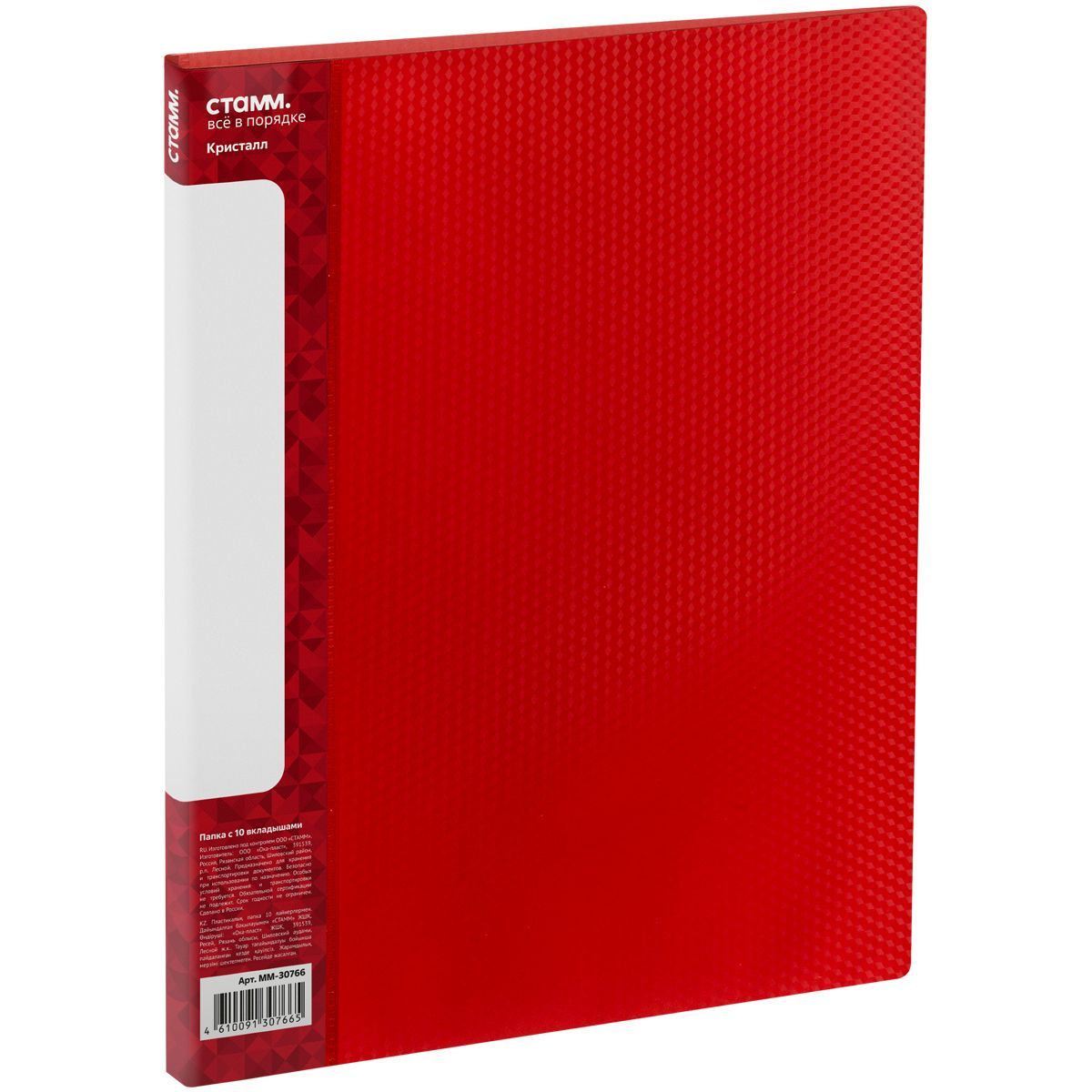 Папка с 10 вкладышами СТАММ "Кристалл" А4, 9мм, 600мкм, пластик, красная