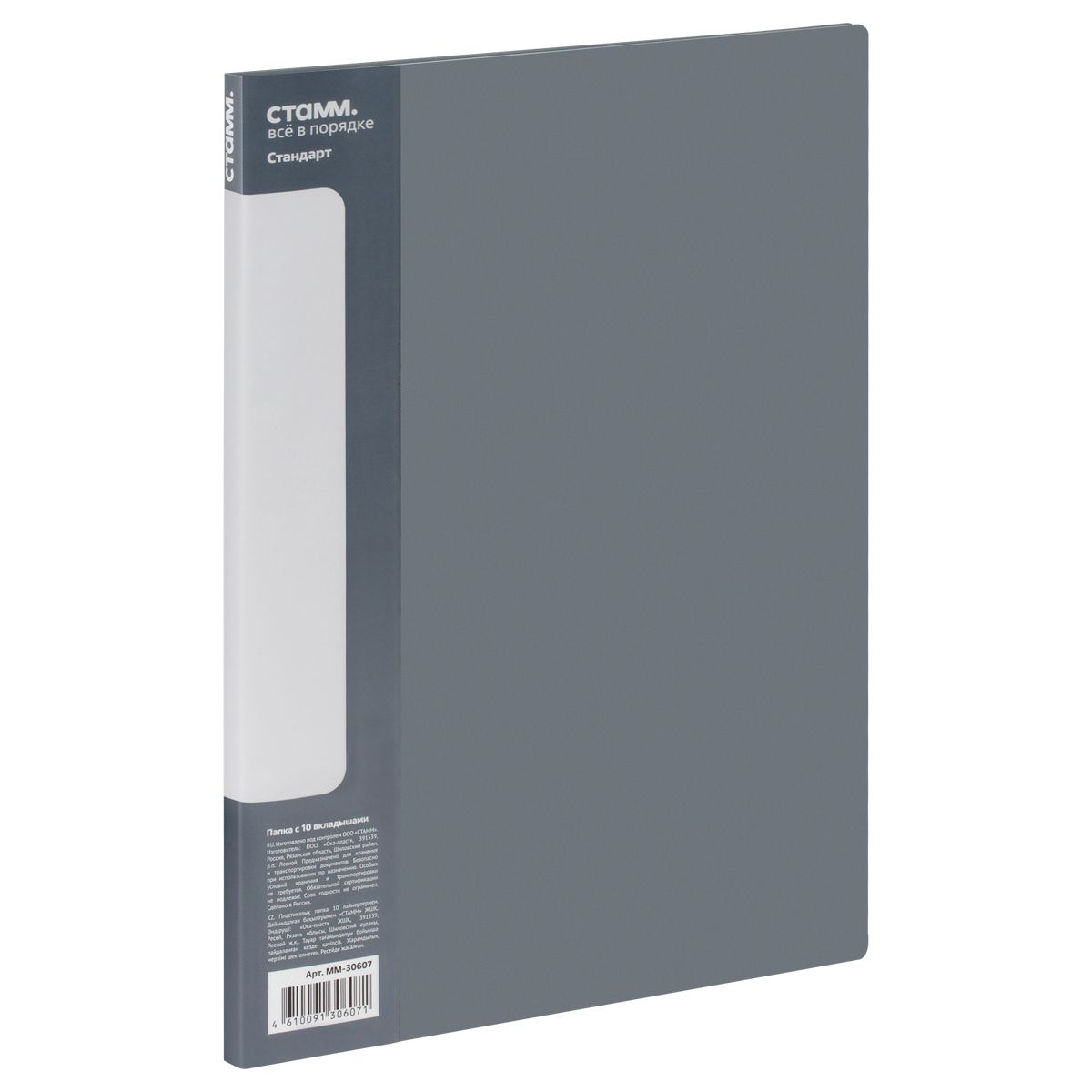 Папка с 10 вкладышами СТАММ "Стандарт" А4, 9мм, 600мкм, пластик, серая