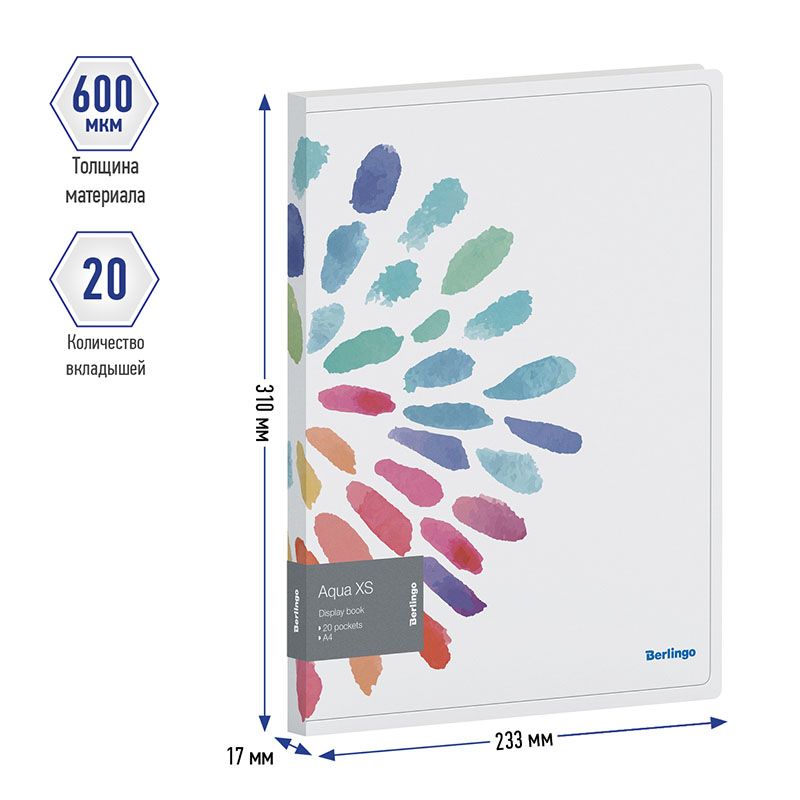 Папка с 20 вкладышами Berlingo "Aqua XS", 17мм, 600мкм, с внутр. карманом, с рисунком