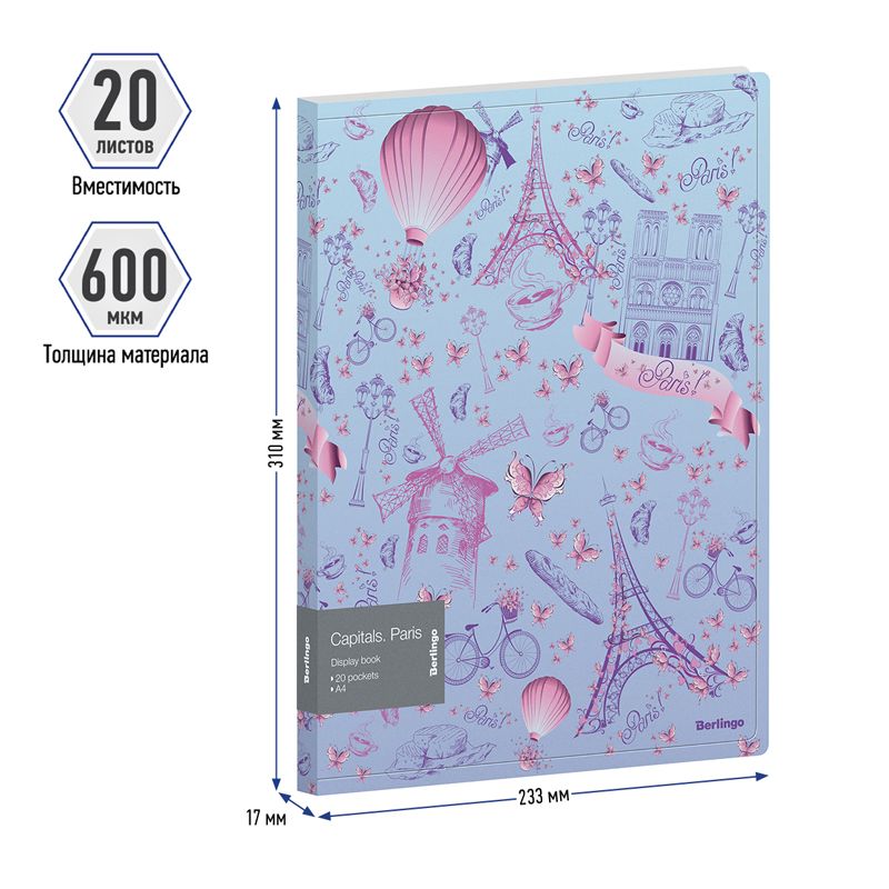 Папка с 20 вкладышами Berlingo "Capitals. Paris", 17мм, 600мкм, с внутр. карманом, с рисунком