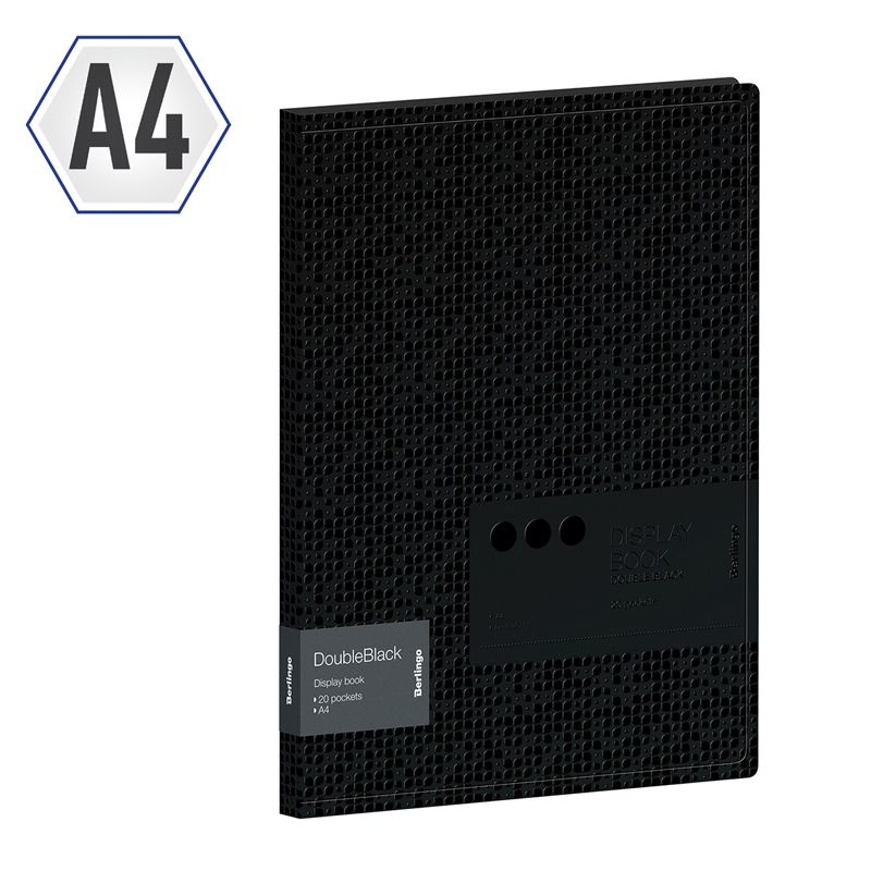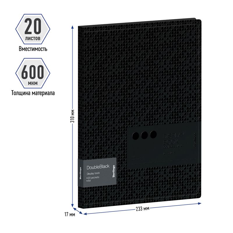 Папка с 20 вкладышами Berlingo "DoubleBlack", 17мм, 600мкм, черная, с внутр. карманом, с рисунком