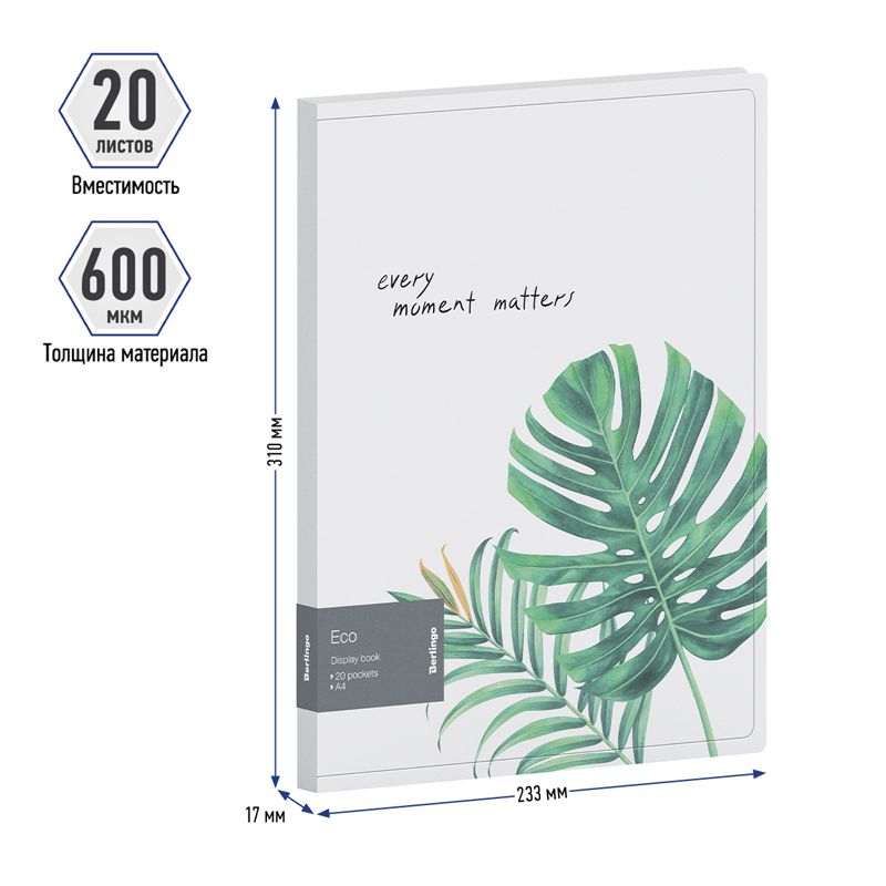 Папка с 20 вкладышами Berlingo "Eco", 17мм, 600мкм, с внутр. карманом, с рисунком