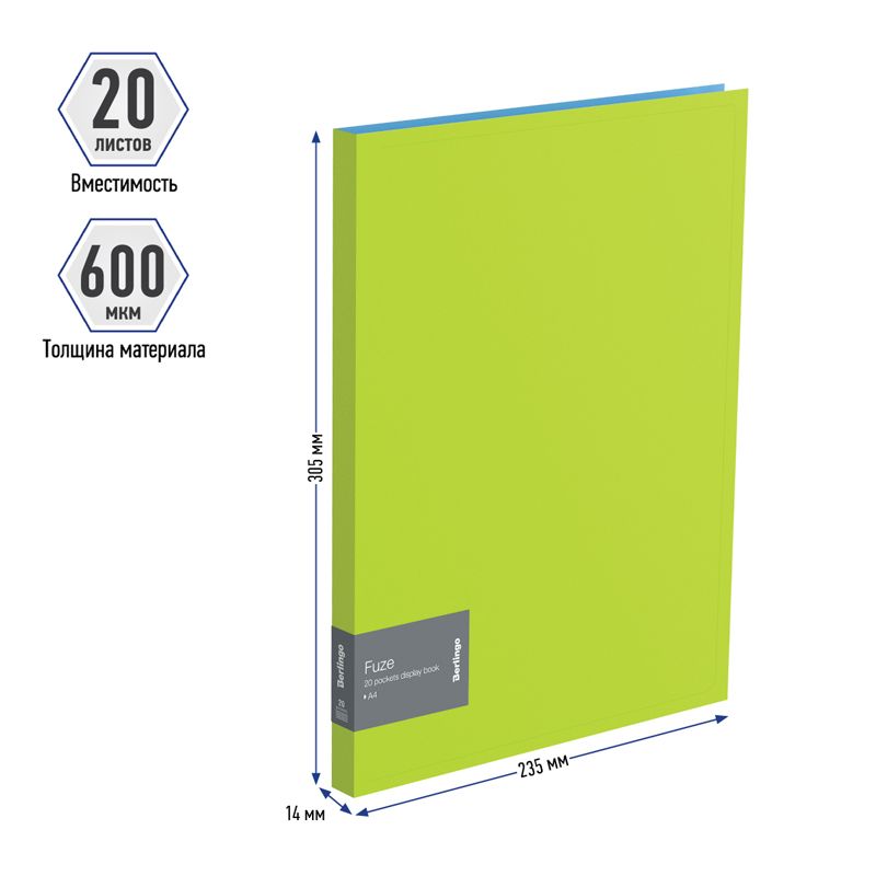Папка с 20 вкладышами Berlingo "Fuze", 14мм, 600мкм, салатовая