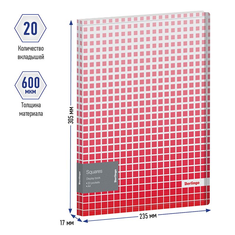 Папка с 20 вкладышами Berlingo "Squares", 17мм, 600мкм, с внутр. карманом, с рисунком