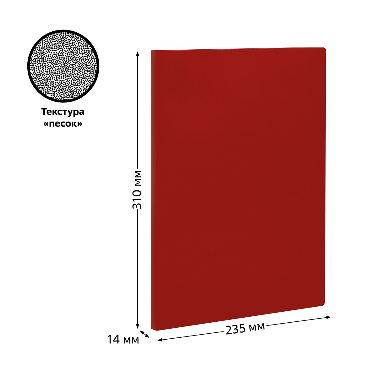 Папка с 20 вкладышами СТАММ А4, 14мм, 500мкм, пластик, красная