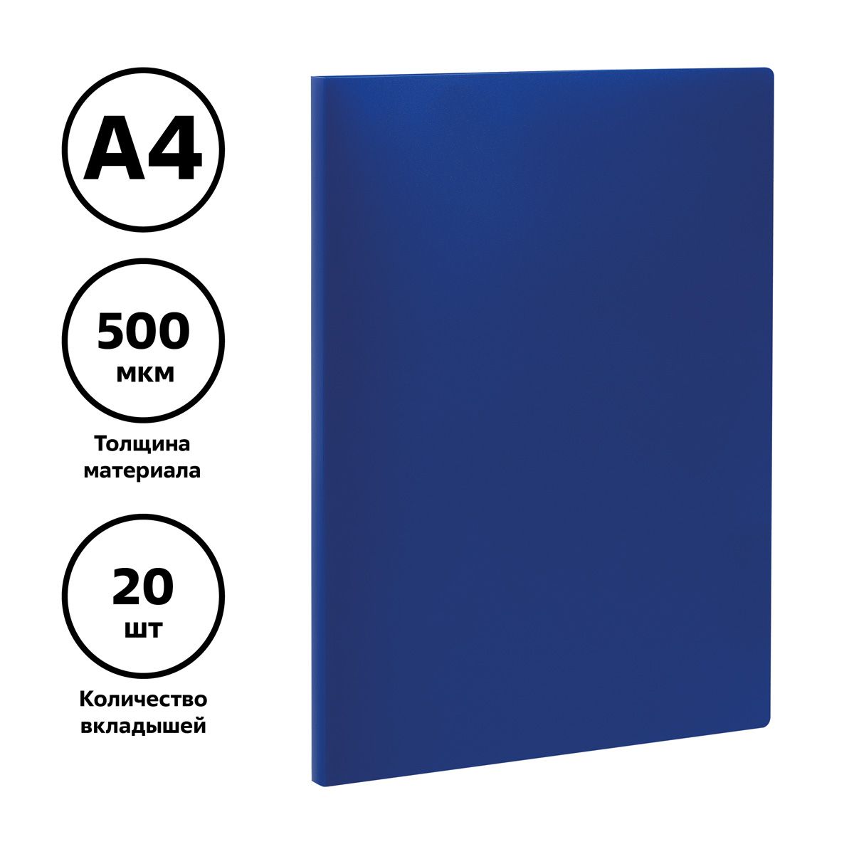 Папка с 20 вкладышами СТАММ А4, 14мм, 500мкм, пластик, синяя