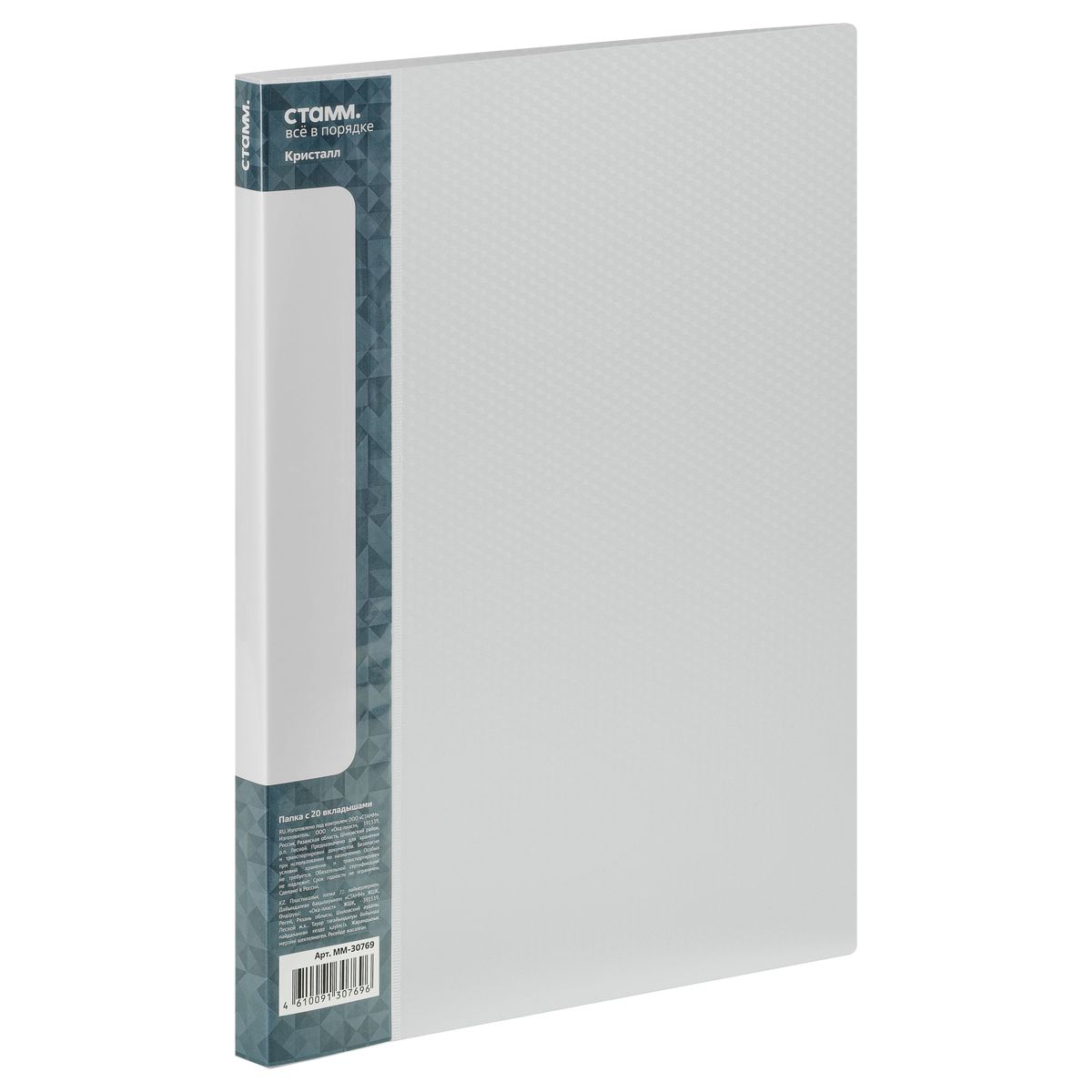 Папка с 20 вкладышами СТАММ "Кристалл" А4, 14мм, 700мкм, пластик, бесцветная