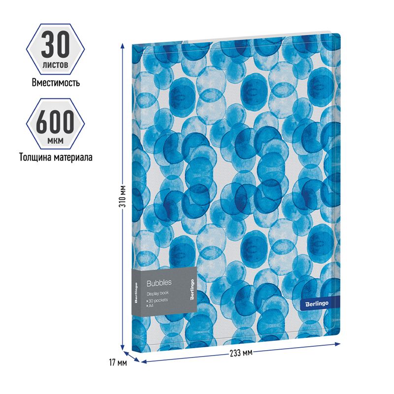 Папка с 30 вкладышами Berlingo "Bubbles", 17мм, 600мкм, с внутр. карманом, с рисунком
