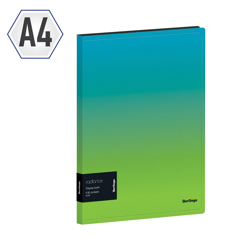 Папка с 30 вкладышами Berlingo "Radiance", 17мм, 600мкм, с внутр. карманом, голубой/зеленый градиент
