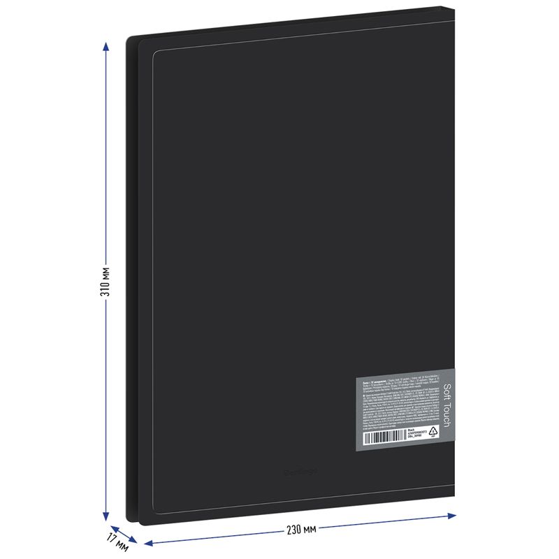 Папка с 30 вкладышами Berlingo "Soft Touch", 17мм, 700мкм, черная, с внутр. карманом