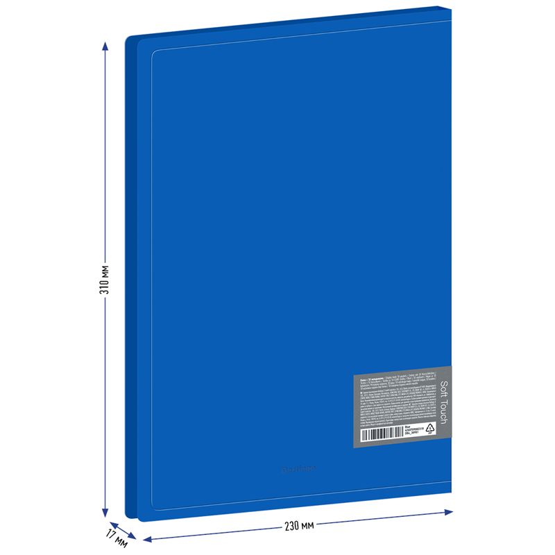 Папка с 30 вкладышами Berlingo "Soft Touch", 17мм, 700мкм, синяя, с внутр. карманом