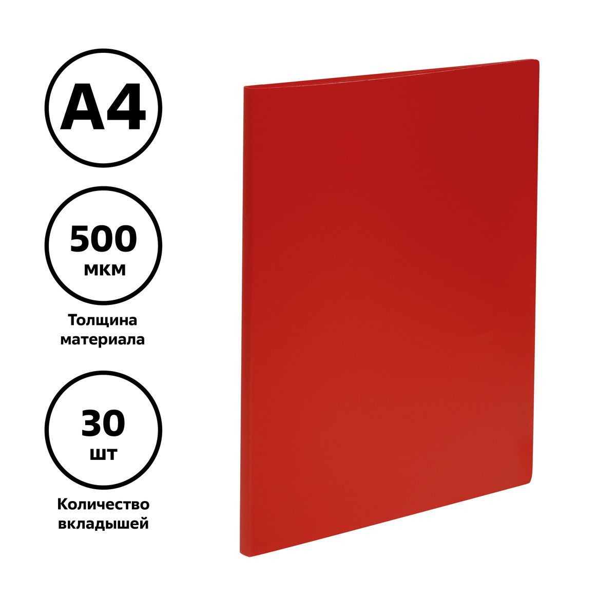 Папка с 30 вкладышами СТАММ А4, 17мм, 500мкм, пластик, красная