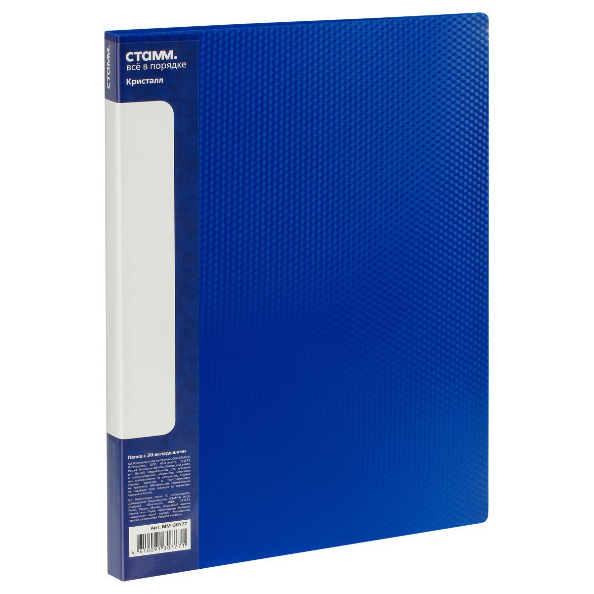 Папка с 30 вкладышами СТАММ "Кристалл" А4, 17мм, 700мкм, пластик, синяя