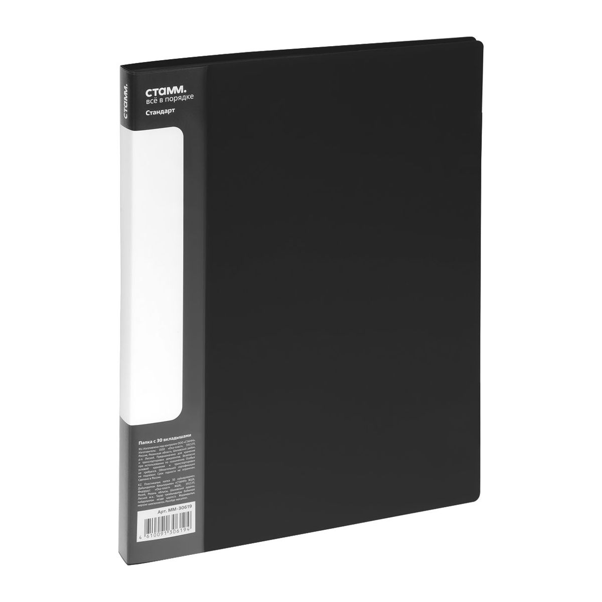 Папка с 30 вкладышами СТАММ "Стандарт" А4, 17мм, 600мкм, пластик, черная