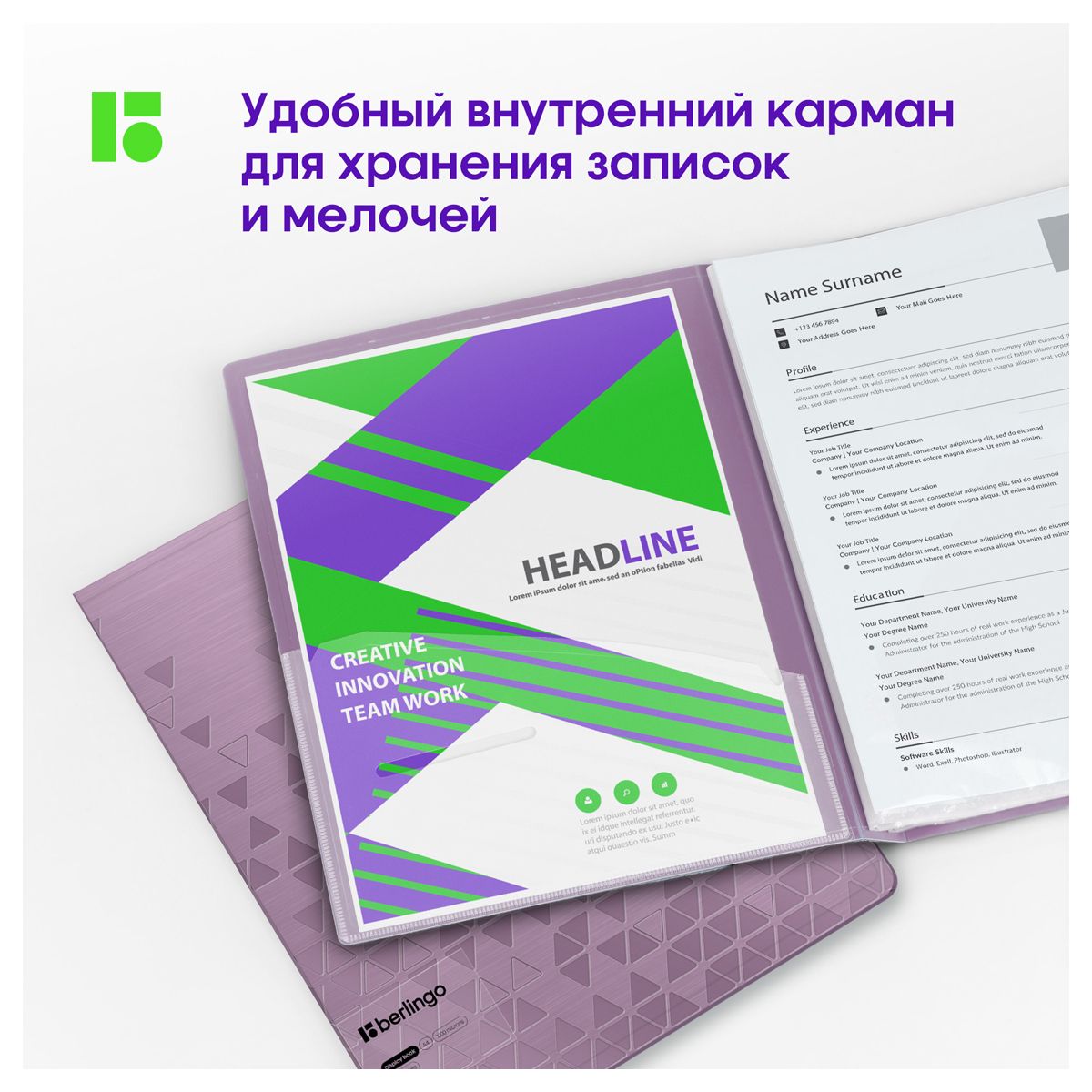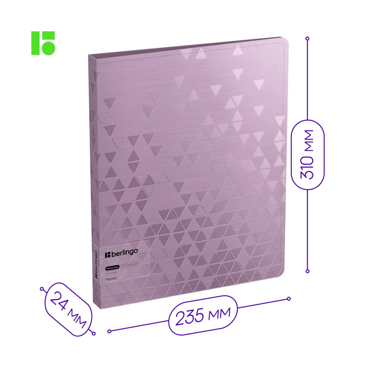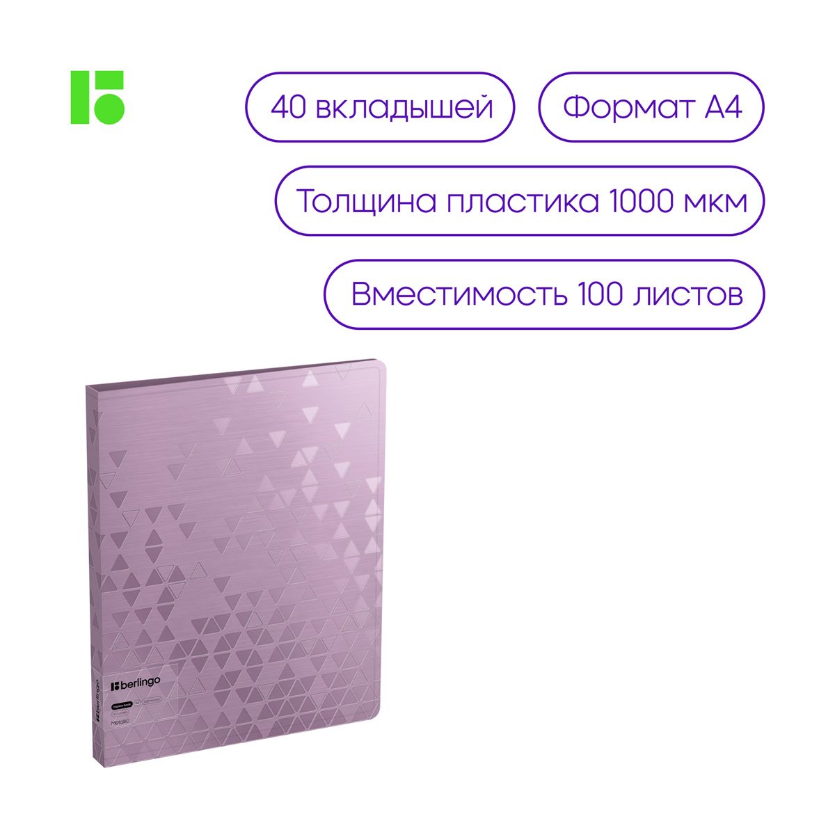 Папка с 40 вкладышами Berlingo "Metallic", 24мм, 1000мкм, сиреневый металлик, с внутр. карманом