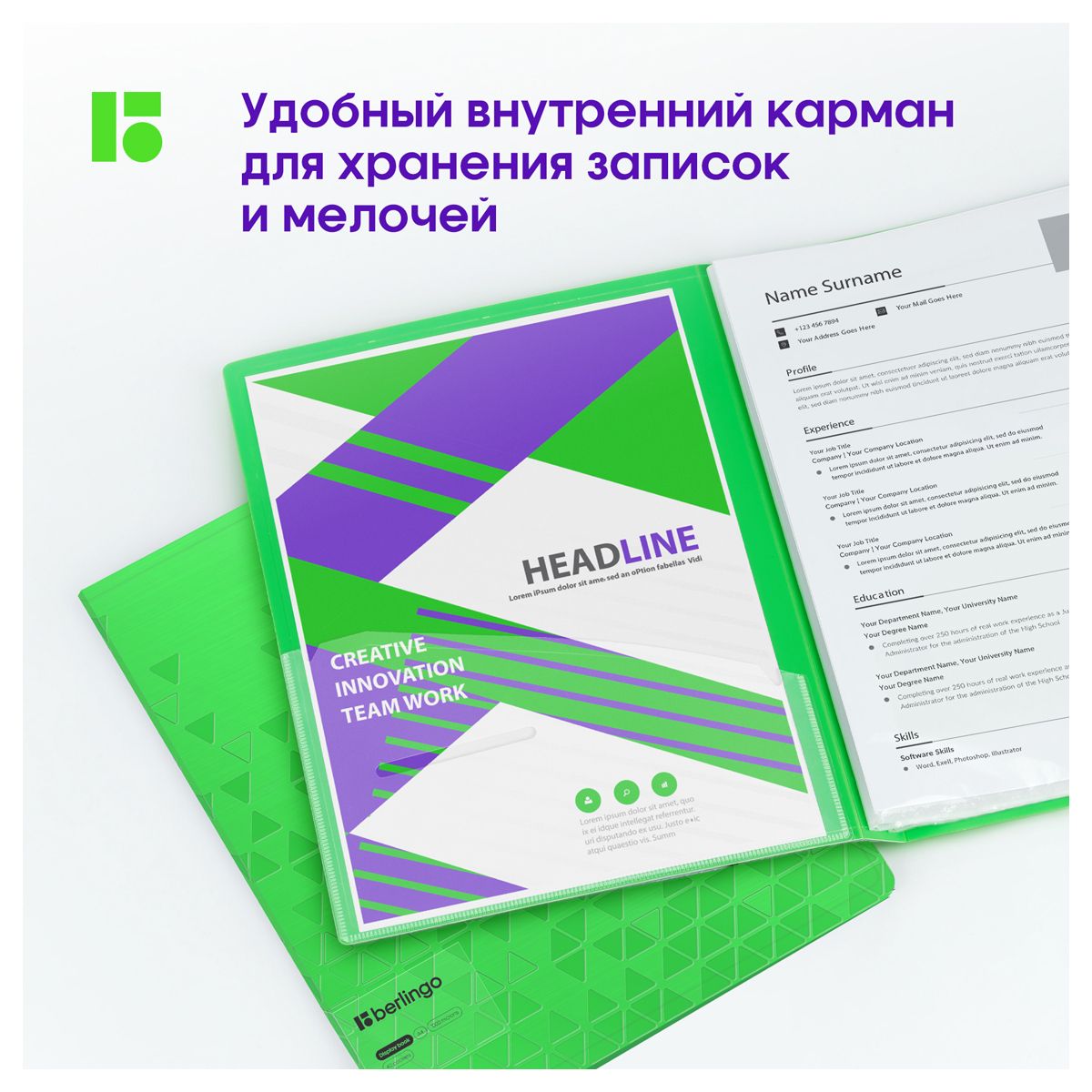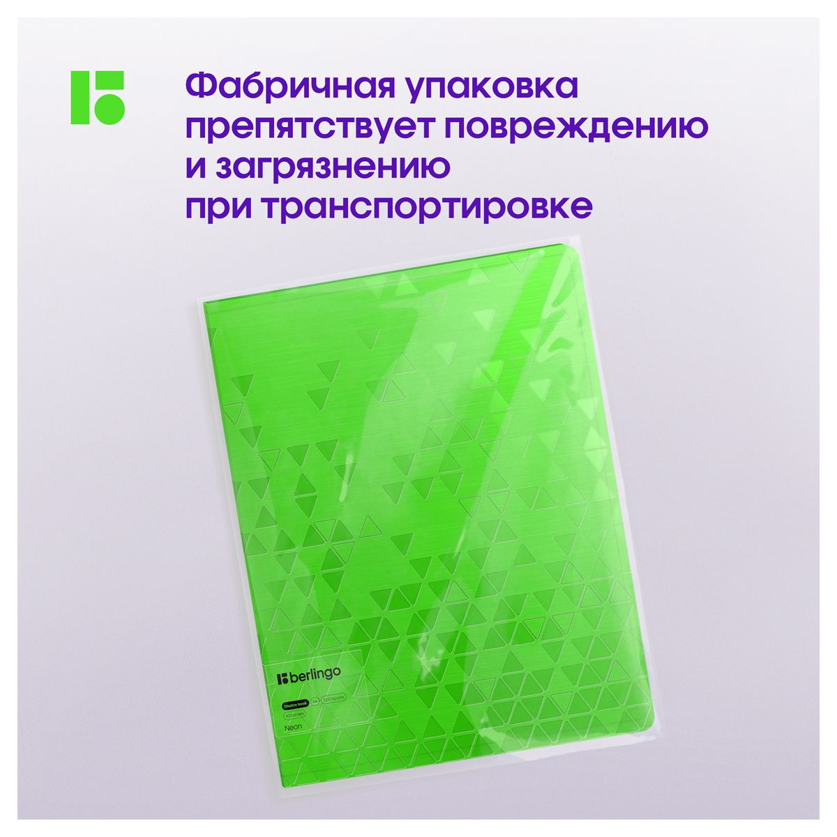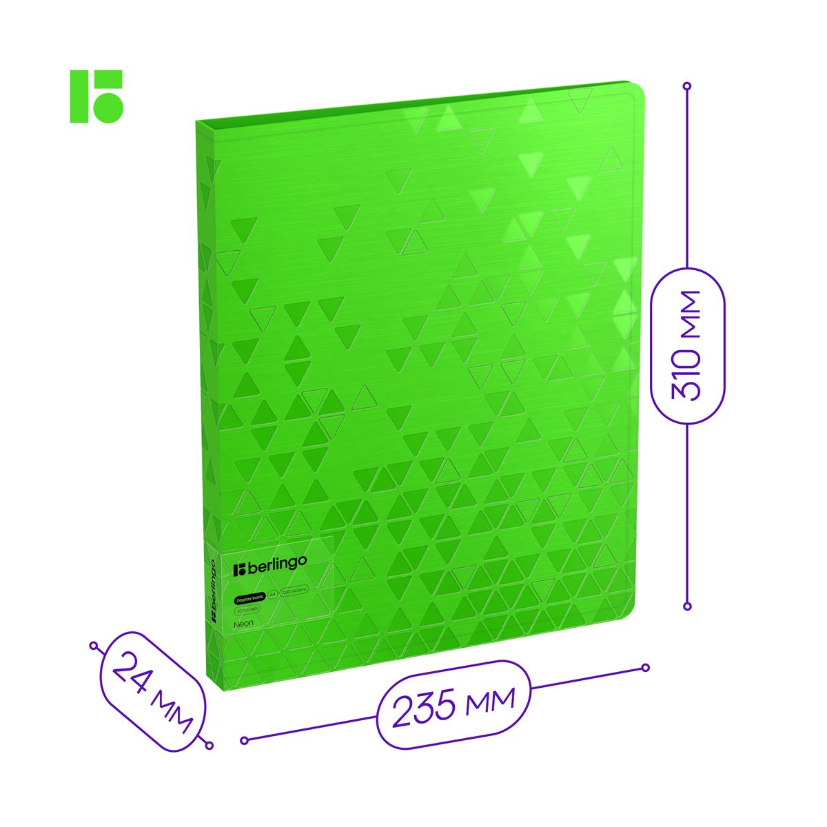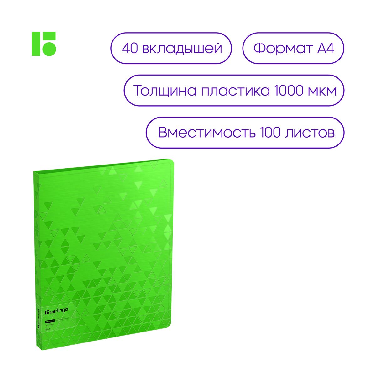 Папка с 40 вкладышами Berlingo "Neon", 24мм, 1000мкм, зеленый неон, с внутр. карманом