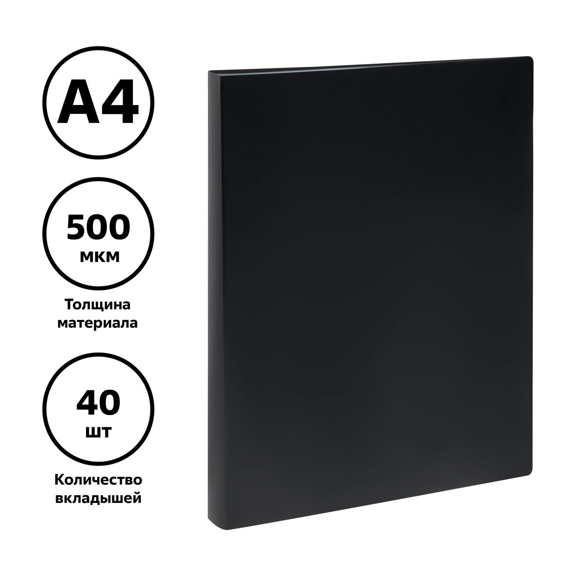 Папка с 40 вкладышами СТАММ А4, 21мм, 500мкм, пластик, черная