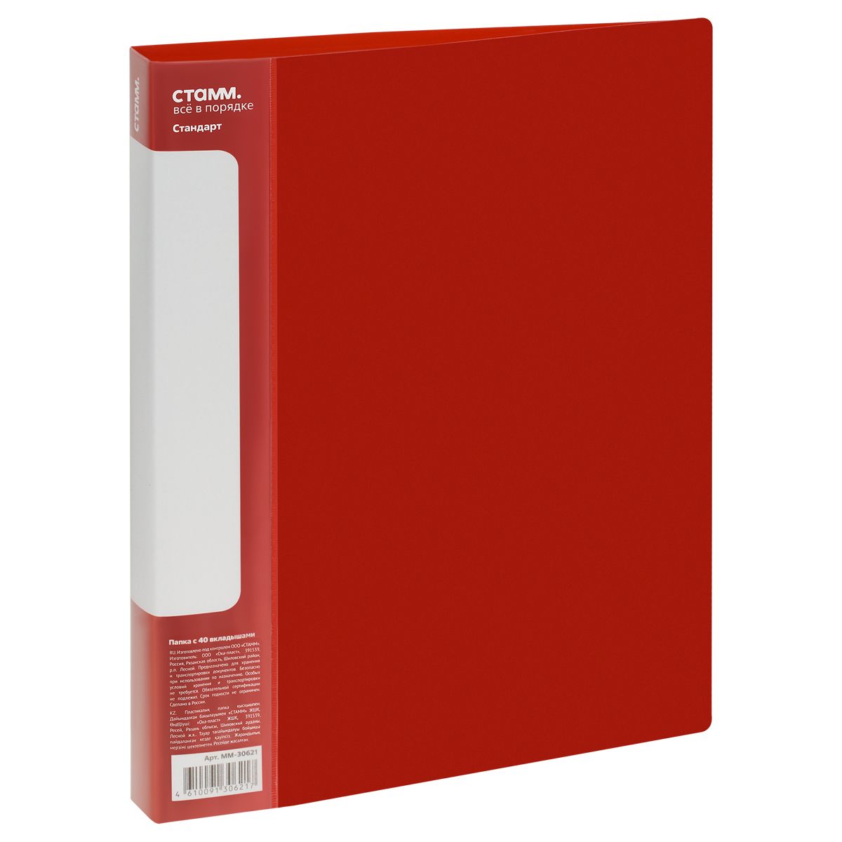 Папка с 40 вкладышами СТАММ "Стандарт" А4, 21мм, 600мкм, пластик, красная