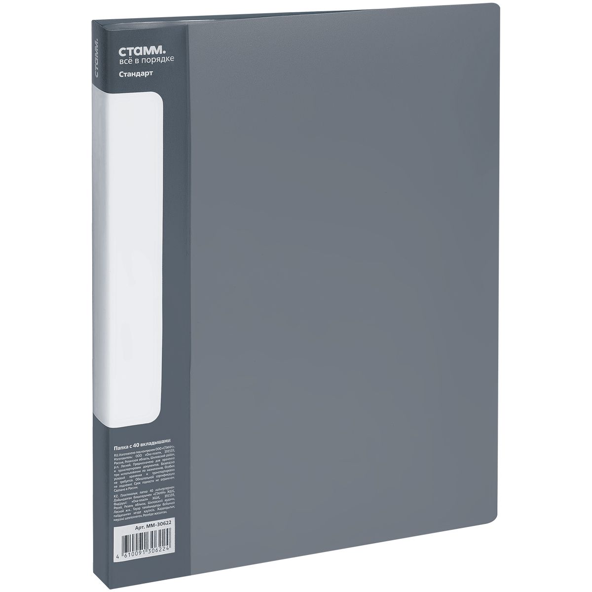 Папка с 40 вкладышами СТАММ "Стандарт" А4, 21мм, 600мкм, пластик, серая