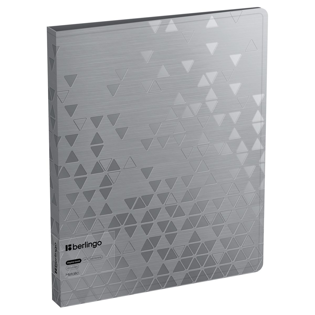 Папка с 60 вкладышами Berlingo "Metallic", 24мм, 1000мкм, серебряный металлик, с внутр. карманом