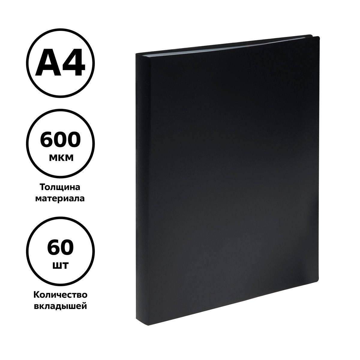 Папка с 60 вкладышами СТАММ А4, 21мм, 600мкм, пластик, черная