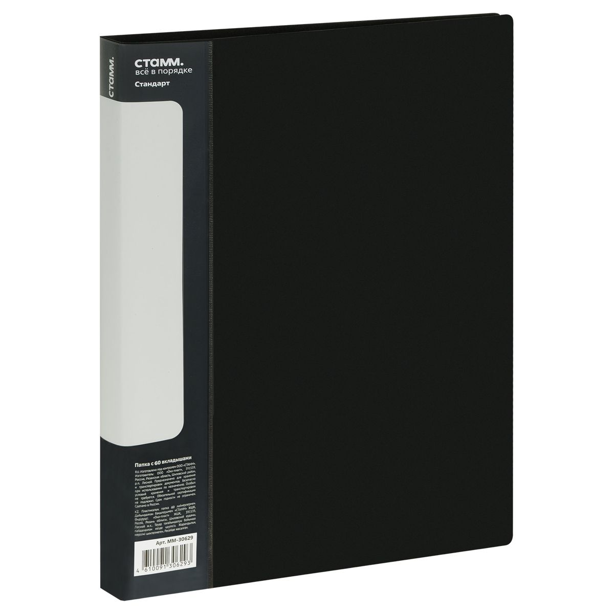 Папка с 60 вкладышами СТАММ "Стандарт" А4, 21мм, 700мкм, пластик, черная