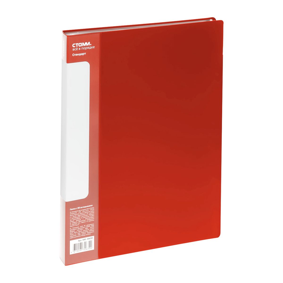 Папка с 80 вкладышами СТАММ "Стандарт" А4, 30мм, 800мкм, пластик, красная