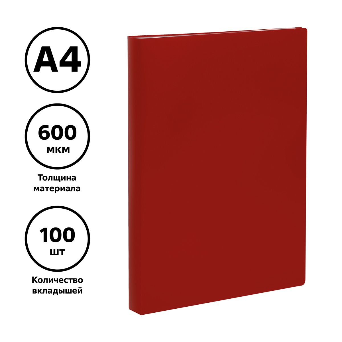 Папка со 100 вкладышами СТАММ А4, 30мм, 600мкм, пластик, красная