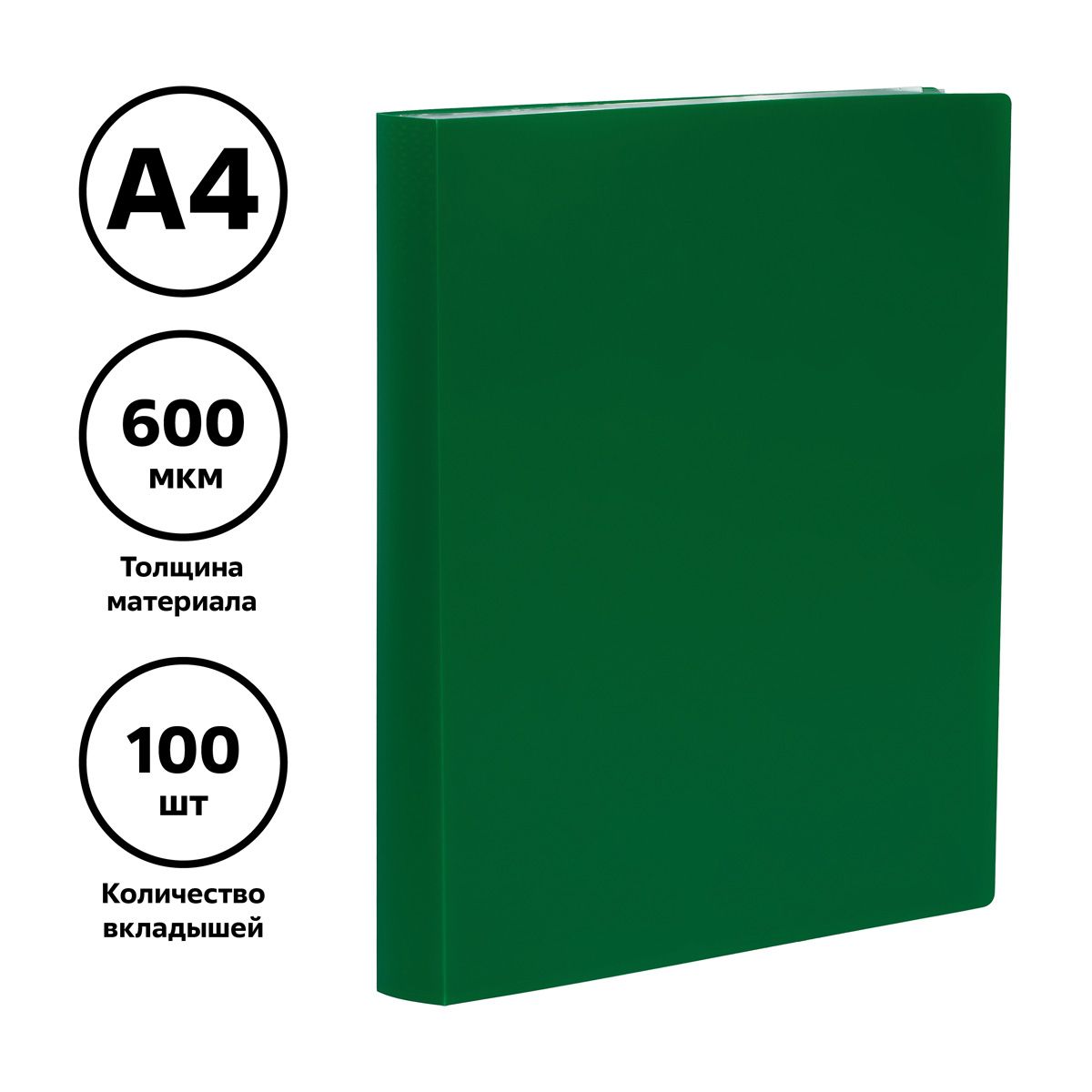 Папка со 100 вкладышами СТАММ А4, 30мм, 600мкм, пластик, зеленая