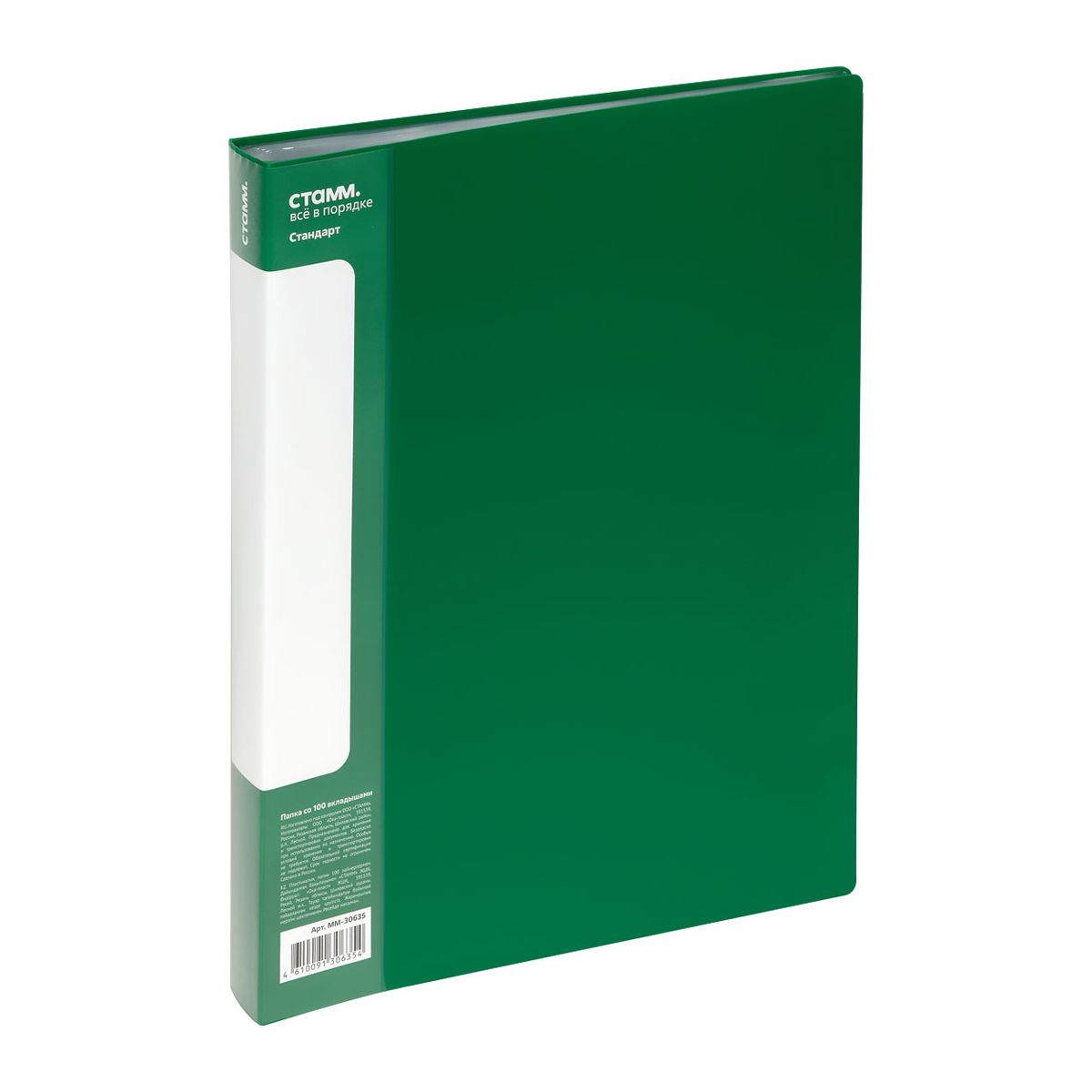 Папка со 100 вкладышами СТАММ "Стандарт" А4, 30мм, 800мкм, пластик, зеленая