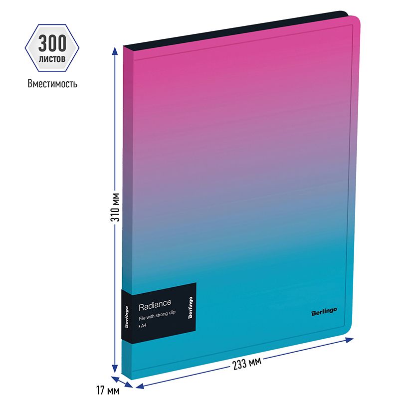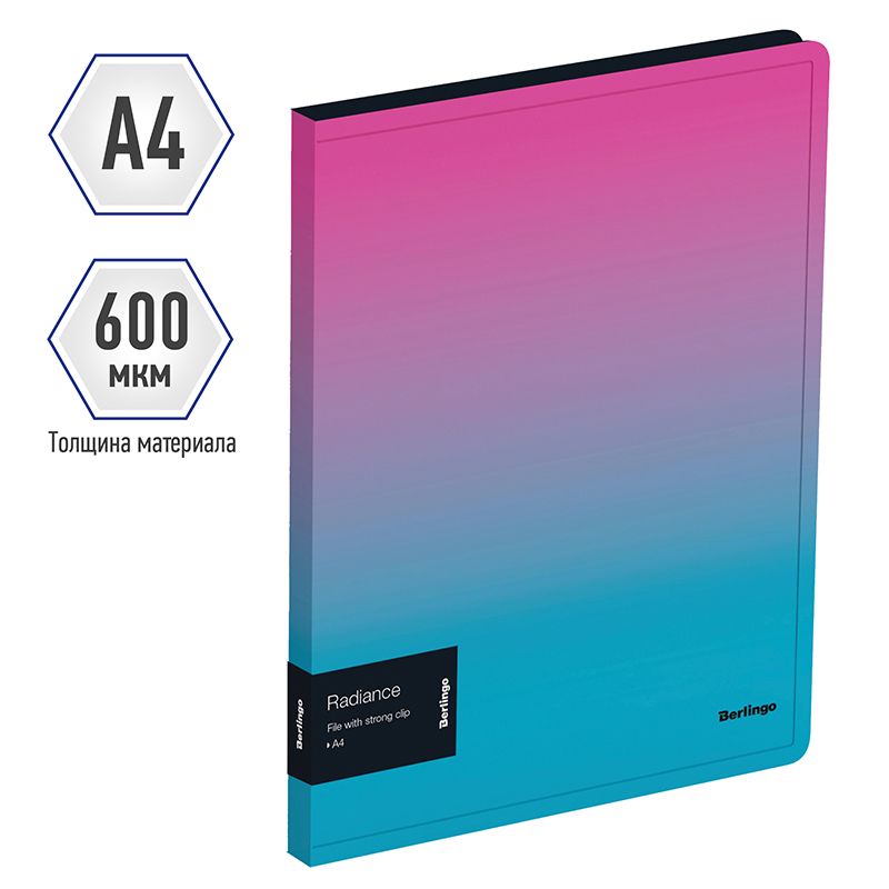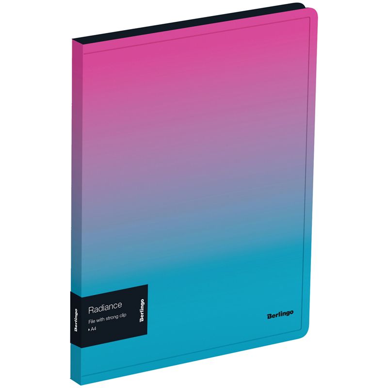 Папка c зажимом Berlingo "Radiance" А4, пластик, 17мм, 600мкм, с внутр. карманом, розовый/голубой градиент