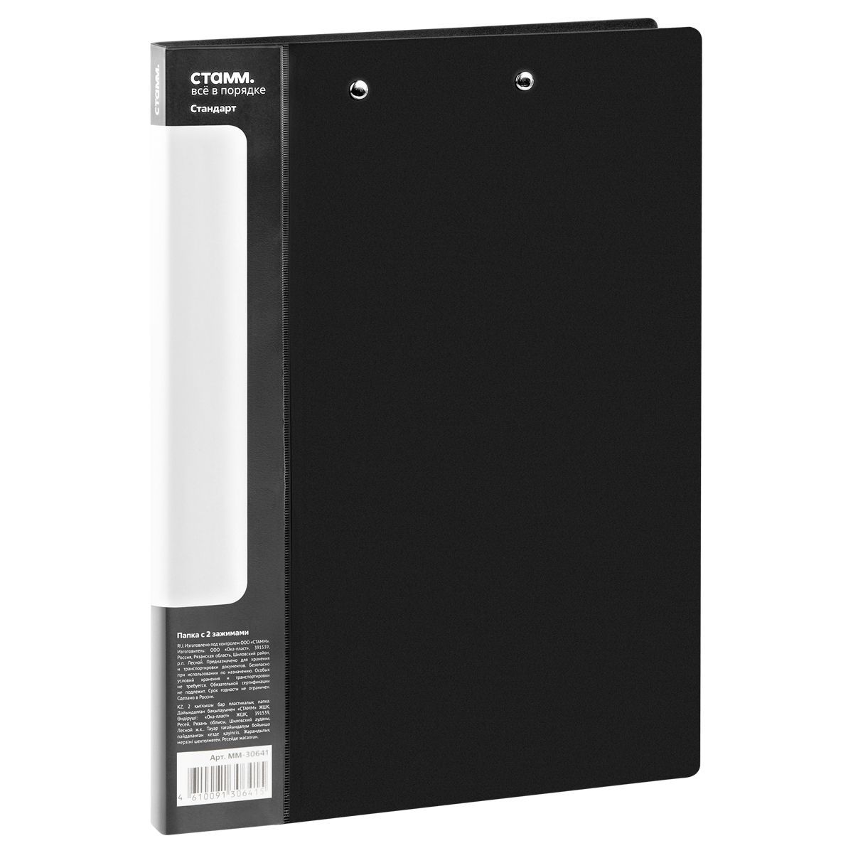 Папка с 2-мя зажимами СТАММ "Стандарт" А4, 17мм, 700мкм, пластик, черная