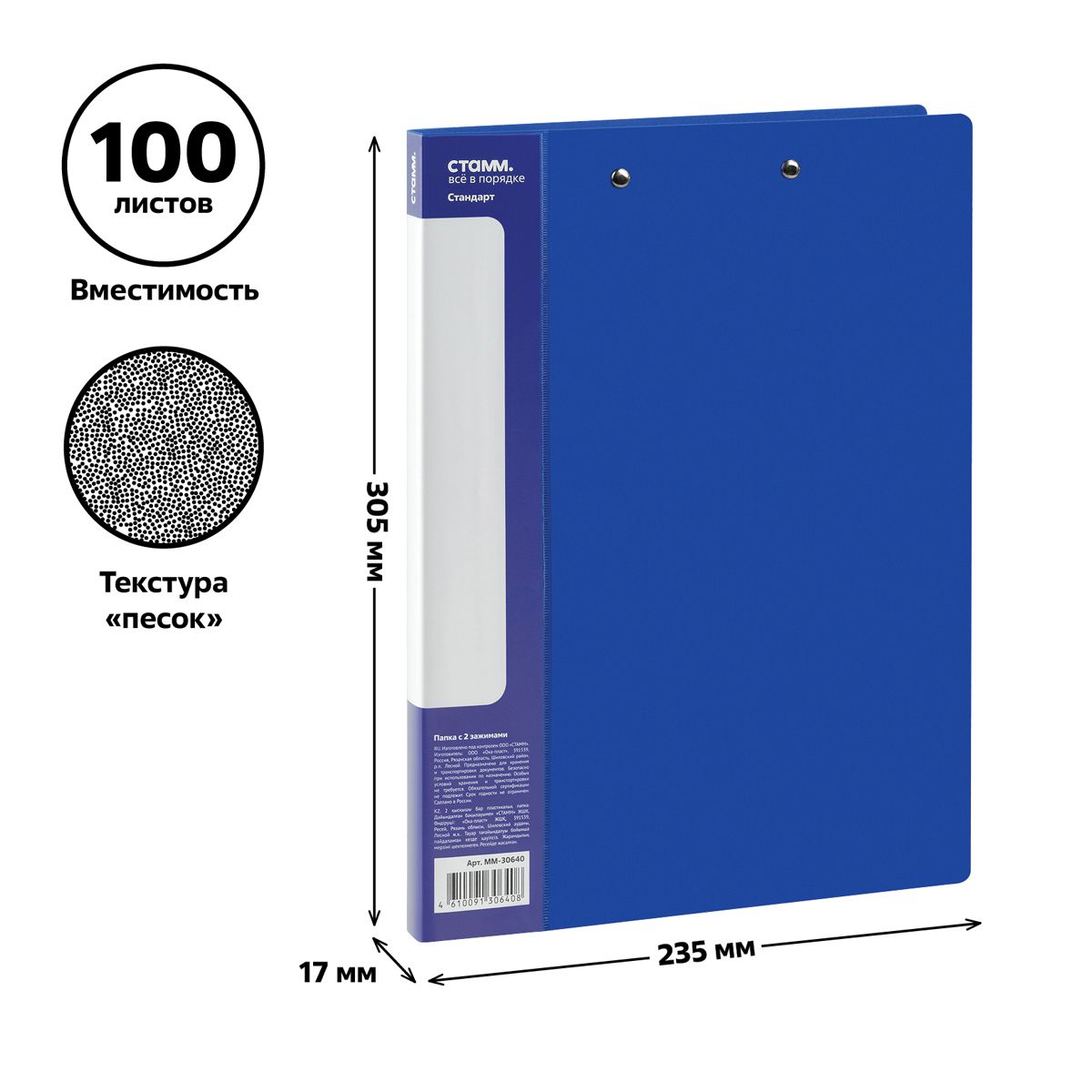 Папка с 2-мя зажимами СТАММ "Стандарт" А4, 17мм, 700мкм, пластик, синяя