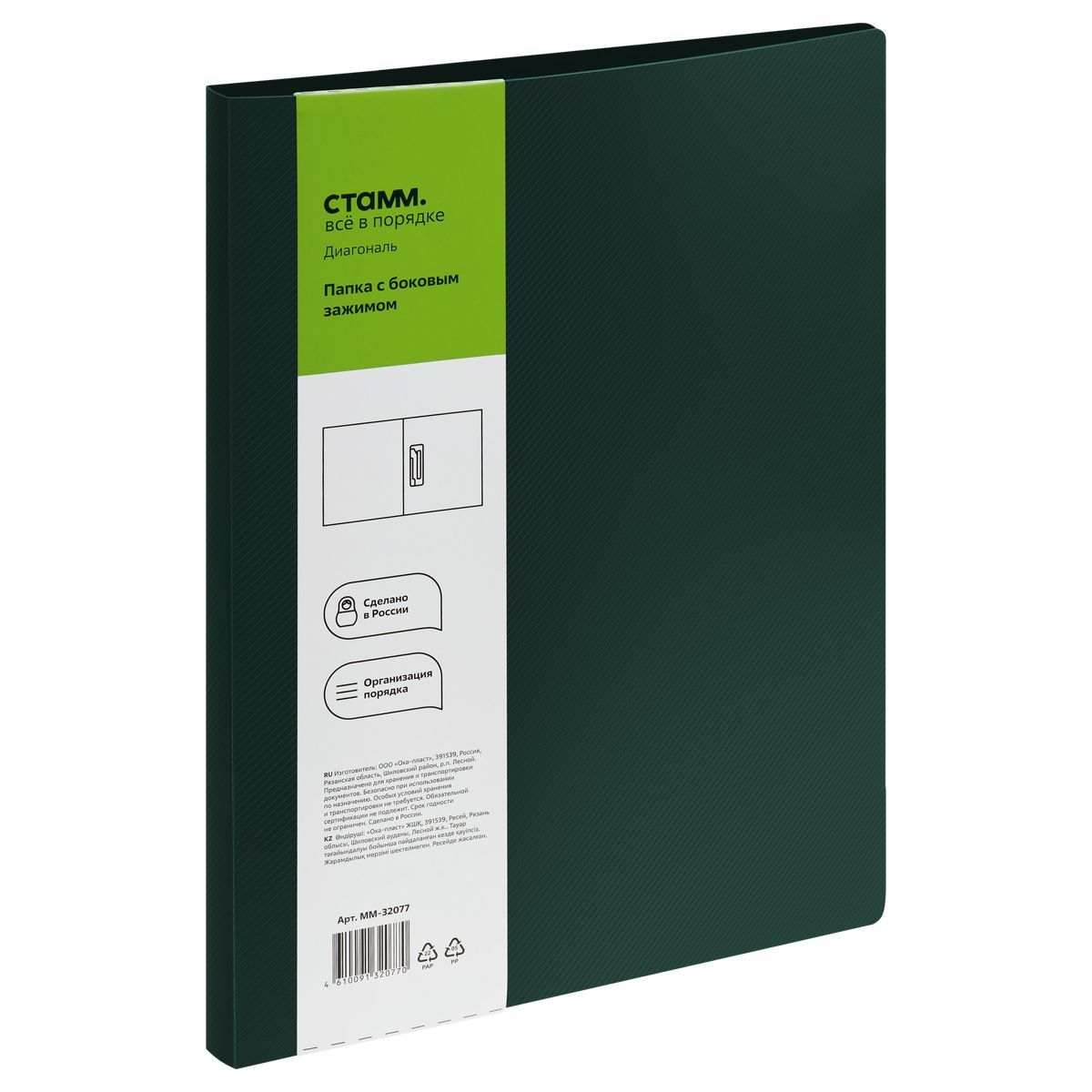 Папка с боковым зажимом СТАММ "Диагональ" А4, 17мм, 700мкм, пластик, изумруд