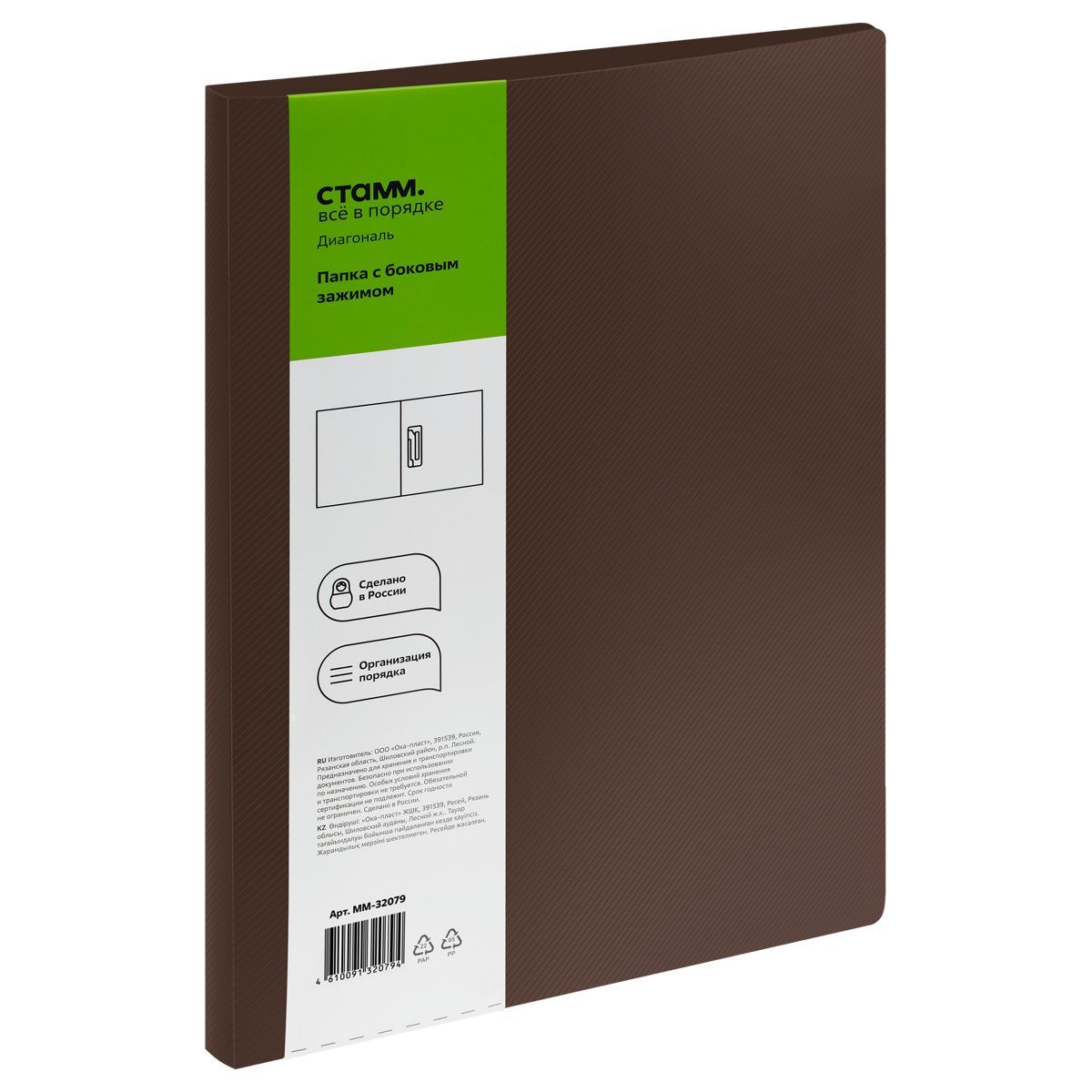 Папка с боковым зажимом СТАММ "Диагональ" А4, 17мм, 700мкм, пластик, шоколад