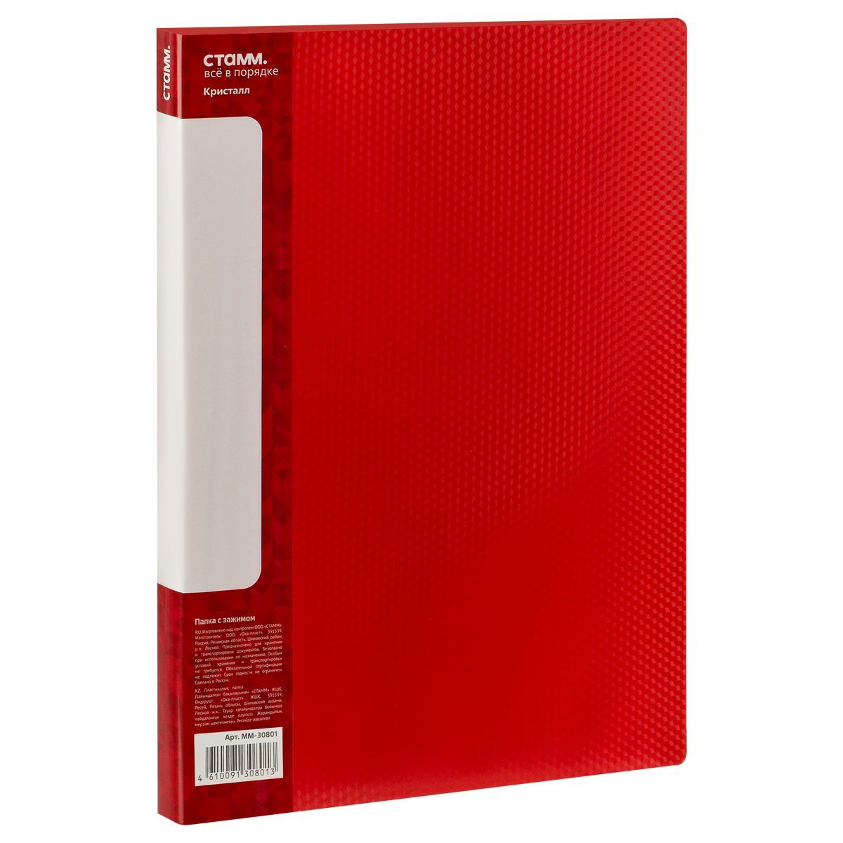 Папка с боковым зажимом СТАММ "Кристалл" А4, 17мм, 700мкм, пластик, красная