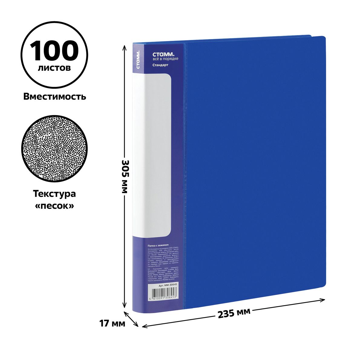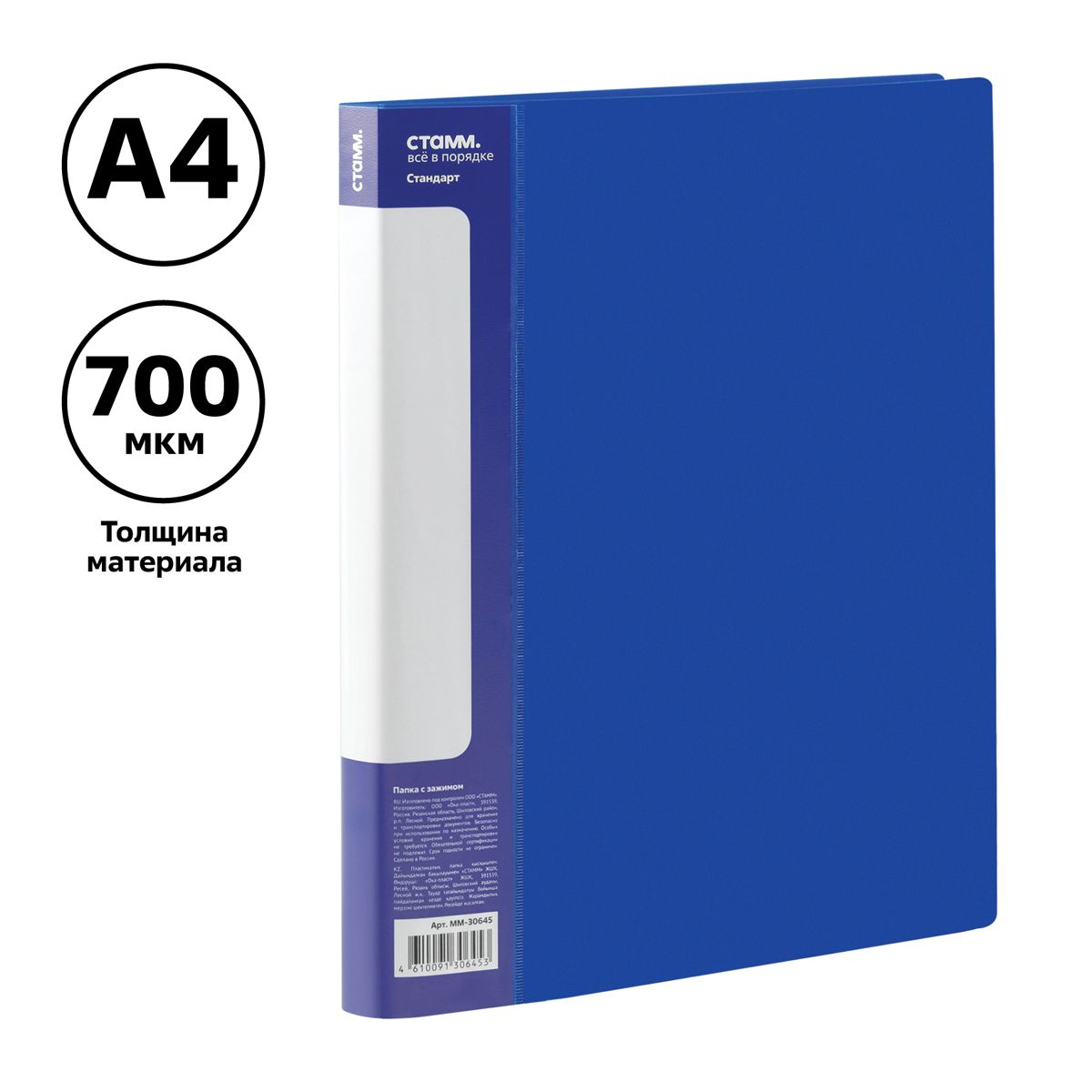 Папка с боковым зажимом СТАММ "Стандарт" А4, 17мм, 700мкм, пластик, синяя