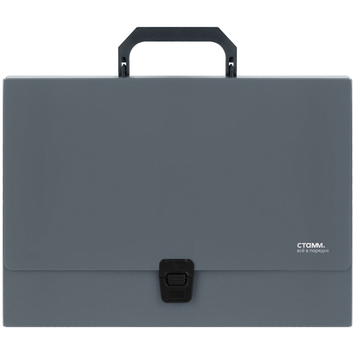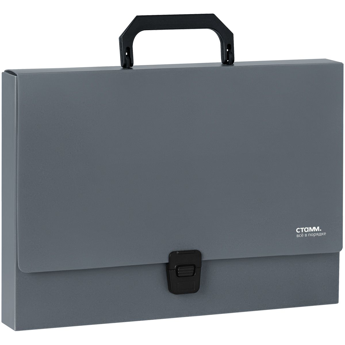 Папка-портфель 1 отделение СТАММ А4, 600мкм, на замке, пластик, серый