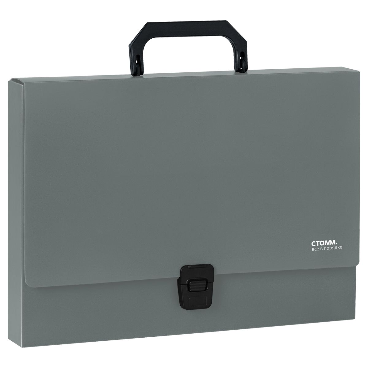 Папка-портфель 1 отделение СТАММ "Стандарт" А4, 1000мкм, на замке, пластик, серая